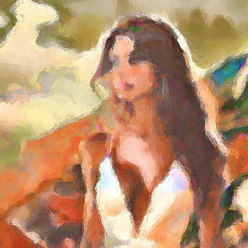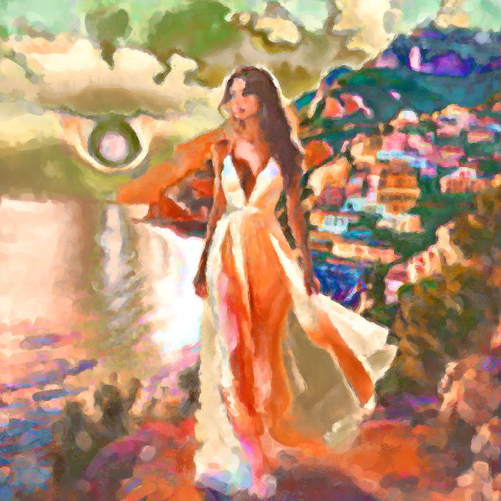 ABOUT THE ARTWORK One night in 1994, I had a strange dream: a young woman in a long white dress on a hill overlooking the sea at sunset, with a small village on the Amalfi Coast in the background. The warm sun radiated bright rays and unreal colors, creating a dreamlike atmosphere reminiscent—exaggerated in an…